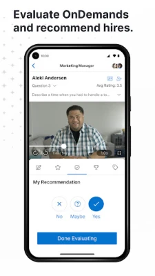 Hire the best talent faster. HireVue helps you as a recruiter or hiring manager to view and share pre-recorded interviews, evaluate and rate candidates, provide real-time feedback, and conduct Live interviews all from the convenience of your mobile device.
