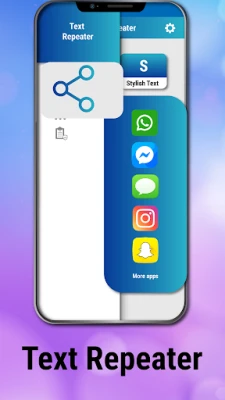 Generate a similar text multiple times & Share it via social media platforms, messaging apps, email, or any other compatible sharing method available on your device with the help of Text Repeater. Sharing Repeated Text feature in Text Repeater enhances convenience, efficiency, and eliminates the need to manually retype or copy-paste the repeated text.