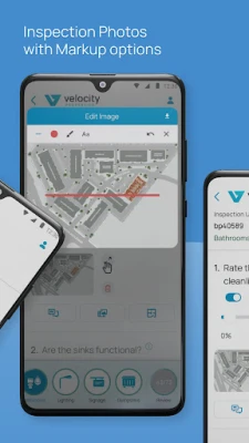 Velocity Properties is a mobile platform for inspecting your commercial property portfolio. After setting up your portfolio and creating an inspection template in the Velocity Properties web application, you can use the mobile app to conduct inspections, create capital plans, generate work orders, and communicate with your tenants. The application allows multiple templates with a variety of question types, photo/video capture, detailed reporting, and integration to industry-leading work order and proptech platforms.